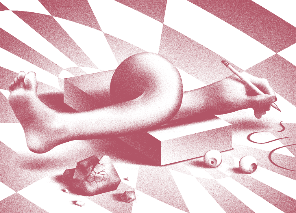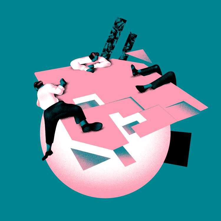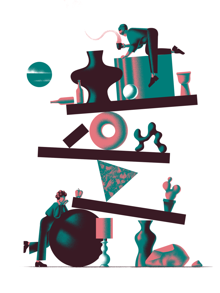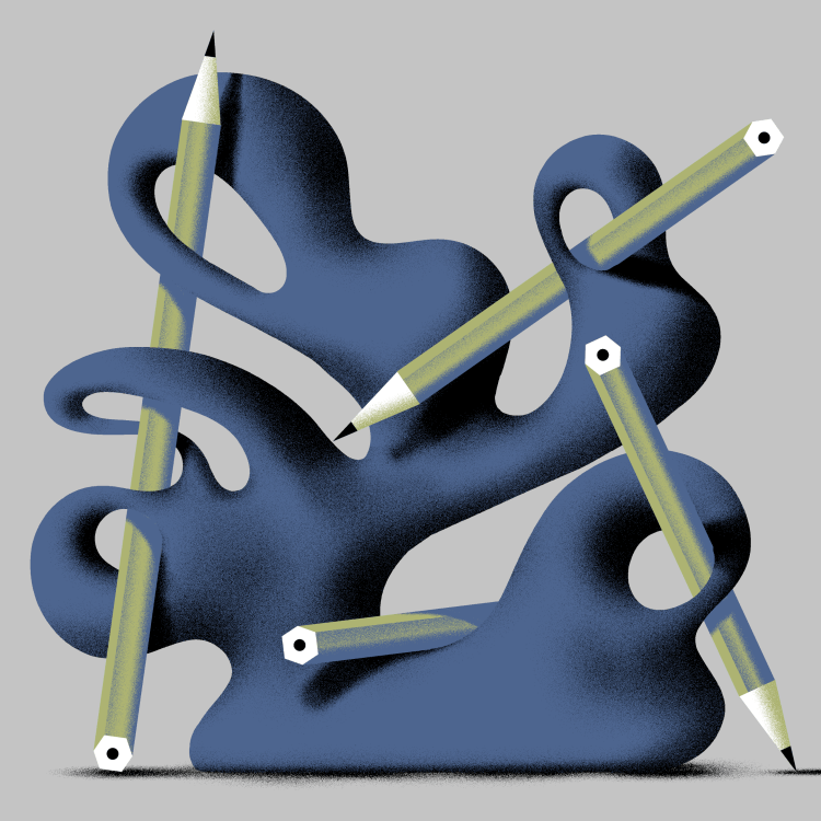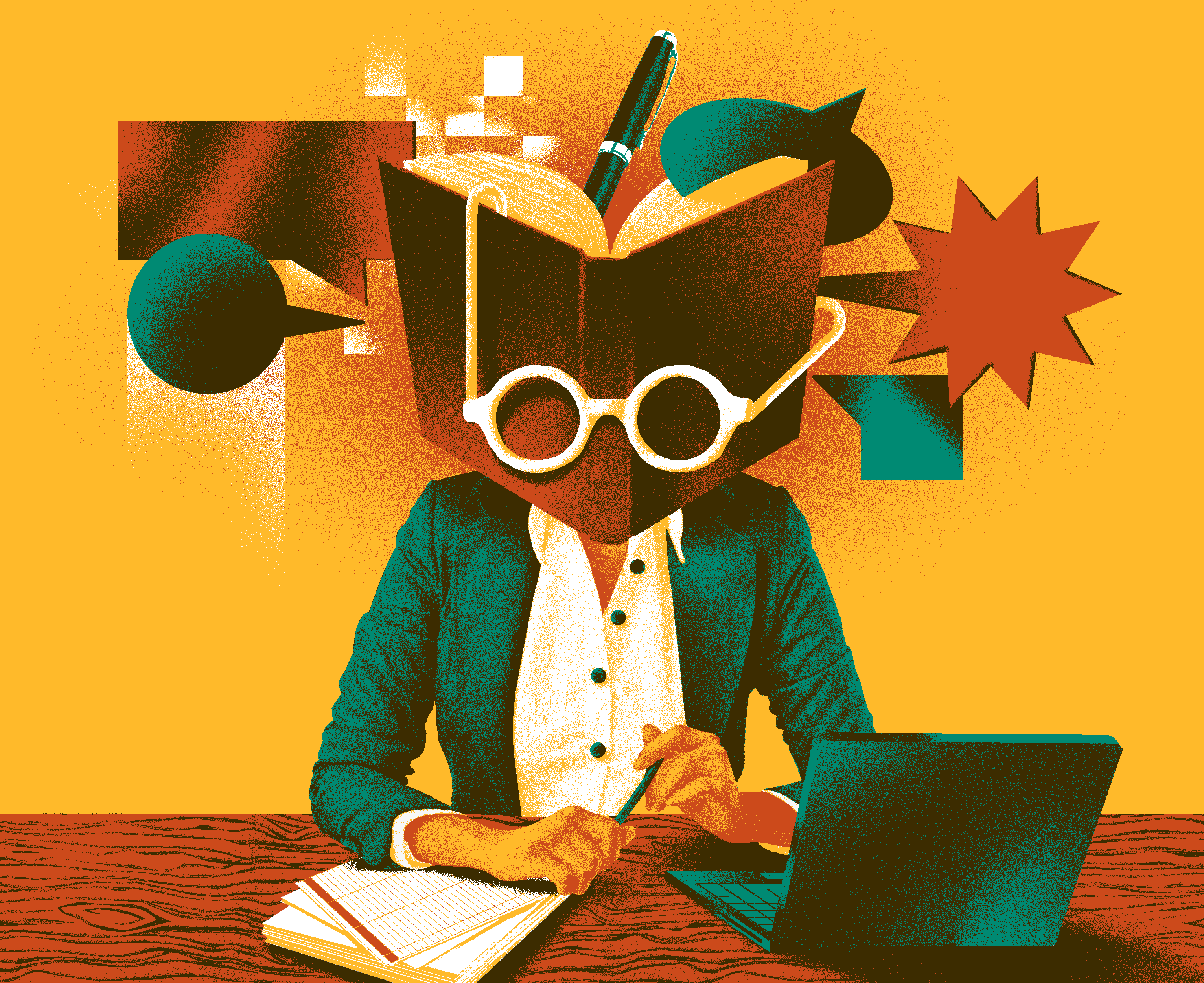 An illustration for an article. “A novelist who worked at Google and Goldman Sachs says the next generation of writers may be toiling away in tech and finance companies.”