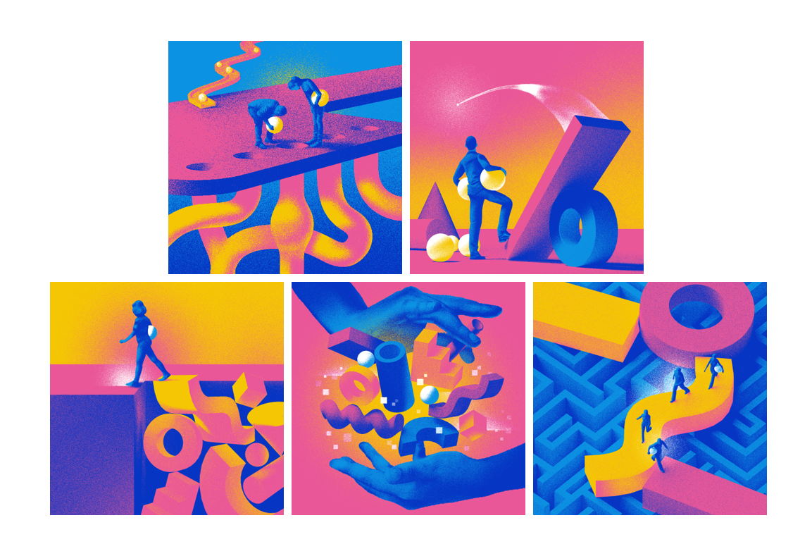 A set of 5 illustrations made for the march 2021 publication of Harvard Business Review